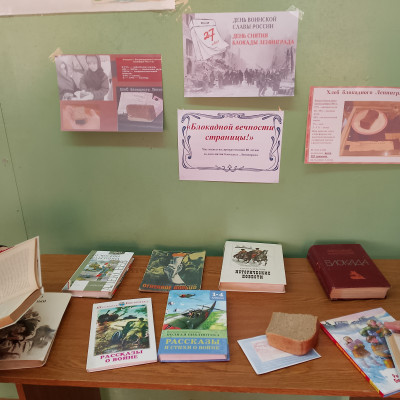 К этой дате 26 января заведующая библиотекой в Краснореченской СОШ для учащихся школы провела час мужества «Блокадной вечности страницы!». Ведущая рассказала ребятам о тяжелых испытаниях, выпавших на долю жителей осажденного закрытого города Ленинграда: о голоде и холоде, о детях и женщинах, работавших наравне с мужчинами на заводах, о защите и обороне Ленинграда советскими солдатами. Библиотекарь рассказала учащимся о героизме и стойкости жителей Ленинграда, о строительстве спасительной «дороги жизни» через Ладожское озеро, о том, как город был превращен в крепость, как питались жители, как работали на заводах их ровесники, как учились в бомбоубежищах. Судьба ленинградских детей и рассказ о Тане Савичевой и её семье, особо затронули сердца ребят. В ходе мероприятия звучали отрывки произведения О.Бергольц, седьмая симфония в блокадном Ленинграде Дмитрия Шостоковича. Большое впечатление на ребят произвел рассказ о норме хлеба блокадников, о том, что значили в то время хлебные карточки. Рассказ сопровождался показом презентации «900 блокадных дней». В память об блокадном хлебе была проведена акция «Блокадный хлеб», ребятам раздали кусочек хлеба весом 125 грамм и хлебную карточку. Дополнила мероприятие оформленная книжная выставка, где расположилась литература, рассказывающая о тех значимых событиях. Встреча получилась насыщенной и полезной.
