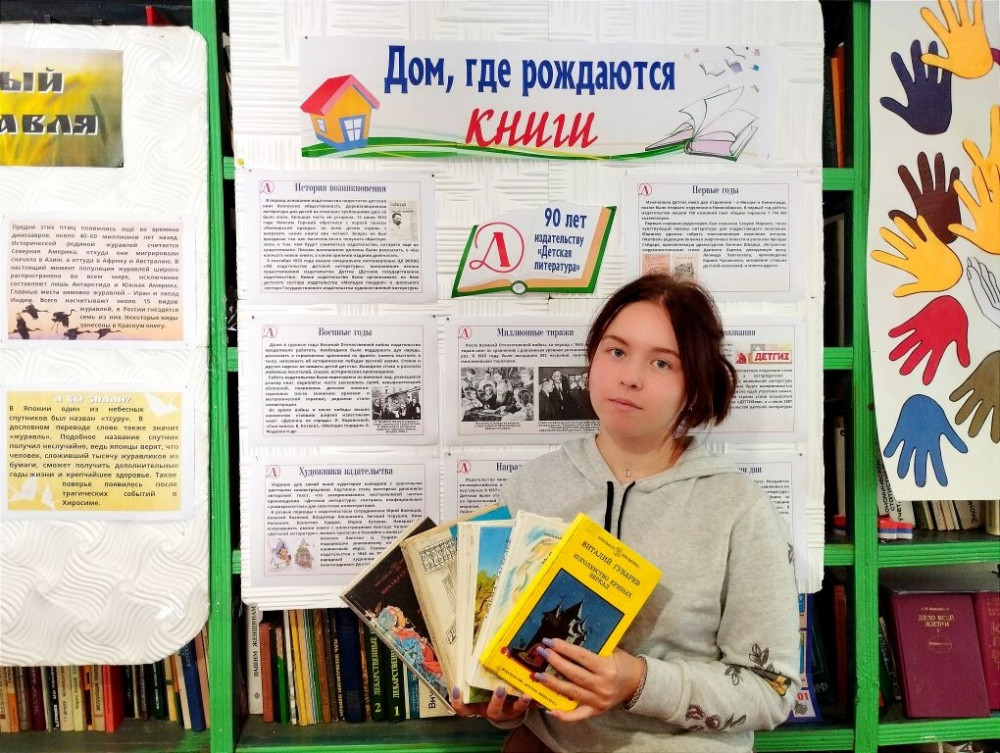 И сегодня издательство "Детская литература", продолжает радовать интересными, поучительными, познавательными книгами. 11 сентября в Большеалабухской сельской библиотеке был оформлен информационный стенд "Дом, где рождаются книги" на котором размещена информация об издательстве "Детская литература".