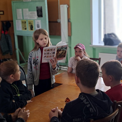 На ней были представлены книги о начале Великой Отечественной войны, об основных сражениях, а также художественная литература о рядовых солдатах, полководцах и маршалах Победы. У выставки дети читали вслух рассказы из книги «Рассказы о войне» С. Алексеева.
