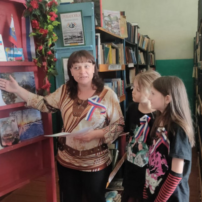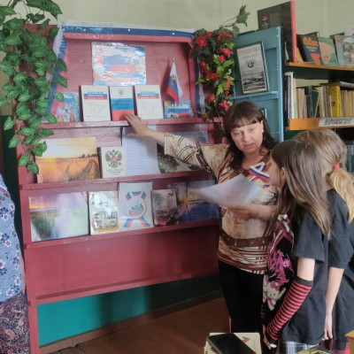Библиотекарь рассказал об истории праздника, о том, что Россия независимое гос-во, имеющее свою территорию, гос.язык, свои законы, выбранного президента, флаг, герб и гимн.